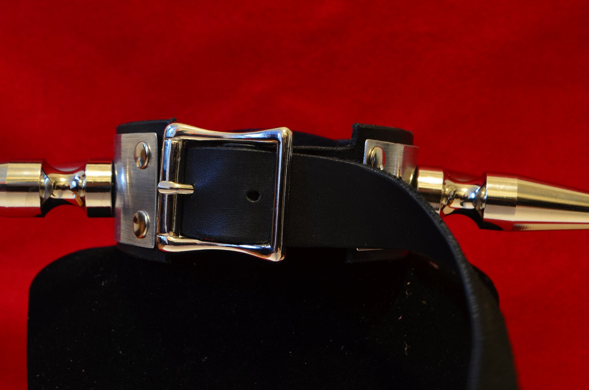 Usually I punch 3 holes in the strap, one at the length of the neck, and then one more on either side, 1" from the first hole. I'll then cut the rest of the strap off, leaving about 2" of tail at the end so it can fit under the buckle even when worn at the largest size.